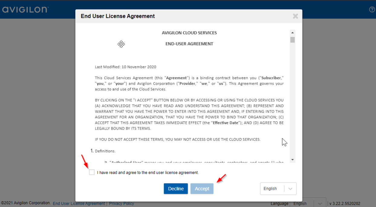 Avigilon Control Center™ software installed with the 180 days demo license. Demo licenses can be requested here.