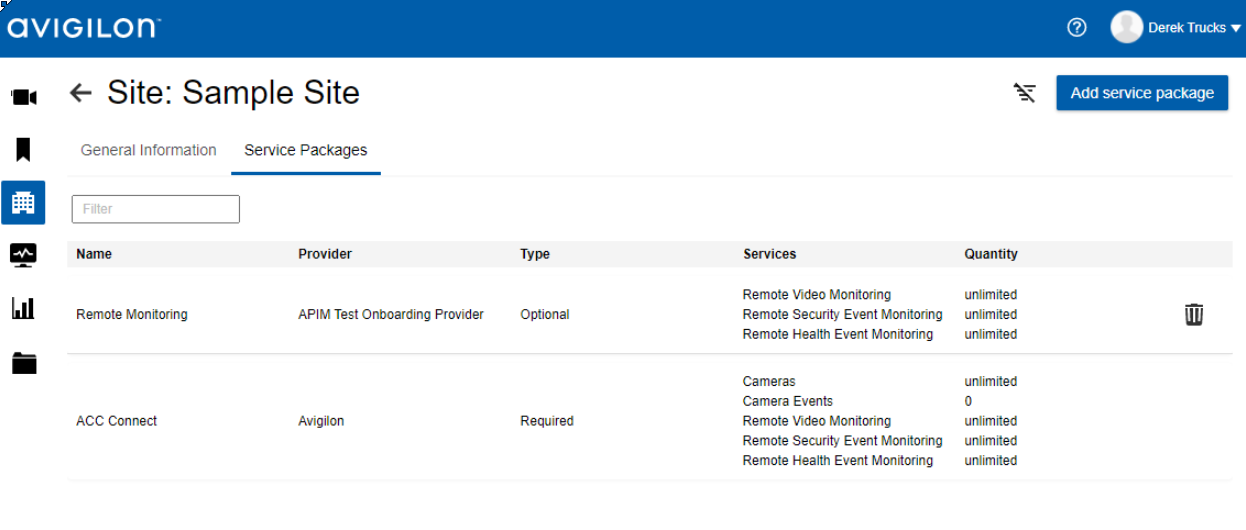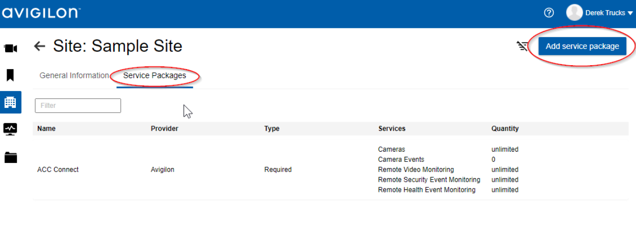 In the site page, select “Service Packages” tab and select “Add service package” option (see the figure).